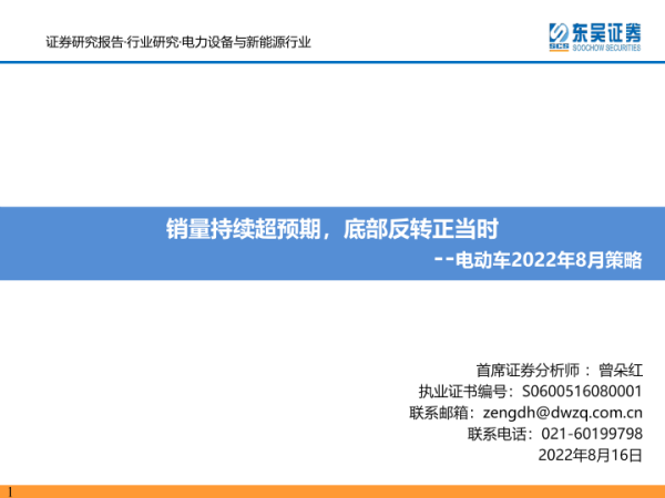 【东吴证券】【20220816】电力设备与新能源行业电动车2022年8月策略:销量持续超预期,底部反转正当时-104页