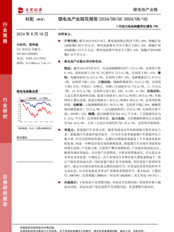 【东莞证券】【20240818】锂电池产业链双周报:7月动力电池销量同比增长19%-12页