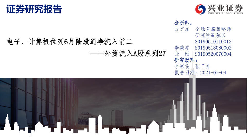 【兴业证券】【20210704】外资流入A股系列27:电子、计算机位列6月陆股通净流入前二-24页