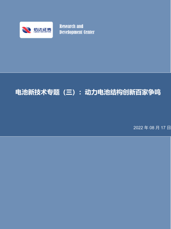 【信达证券】【20220817】电力设备与新能源行业电池新技术专题(三):动力电池结构创新百家争鸣-29页
