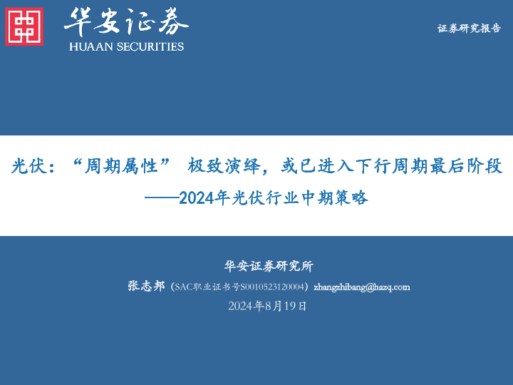 【华安证券】【20240819】2024年光伏行业中期策略:光伏:“周期属性”极致演绎,或已进入下行周期最后阶段-39页