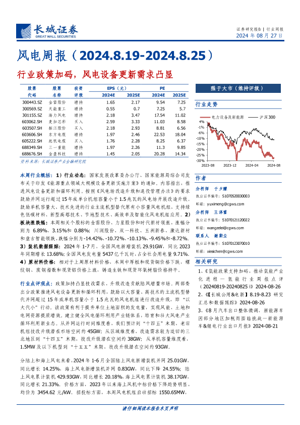 【长城证券】【20240827】风电行业周报:行业政策加码,风电设备更新需求凸显-14页