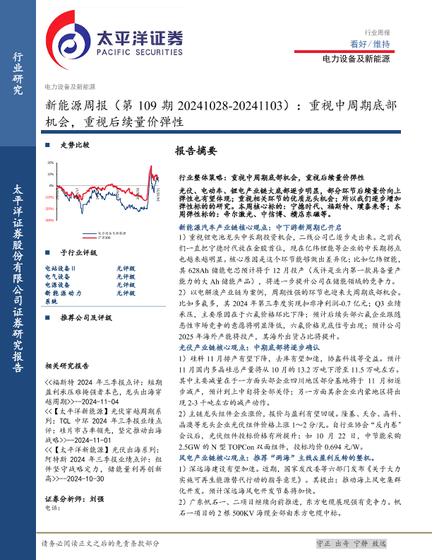 【太平洋证券】【20241104】20241104-太平洋-新能源行业周报(第109期):重视中周期底部机会,重视后续量价弹性-29页