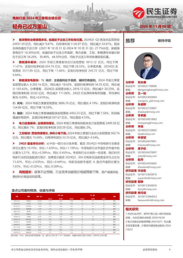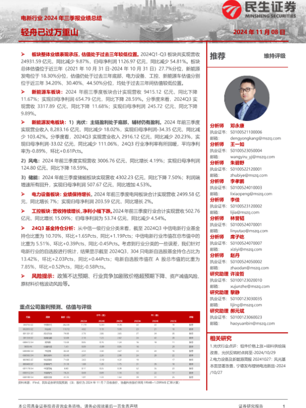 【民生证券】【20241108】电新行业2024年三季报业绩总结:轻舟已过万重山-49页