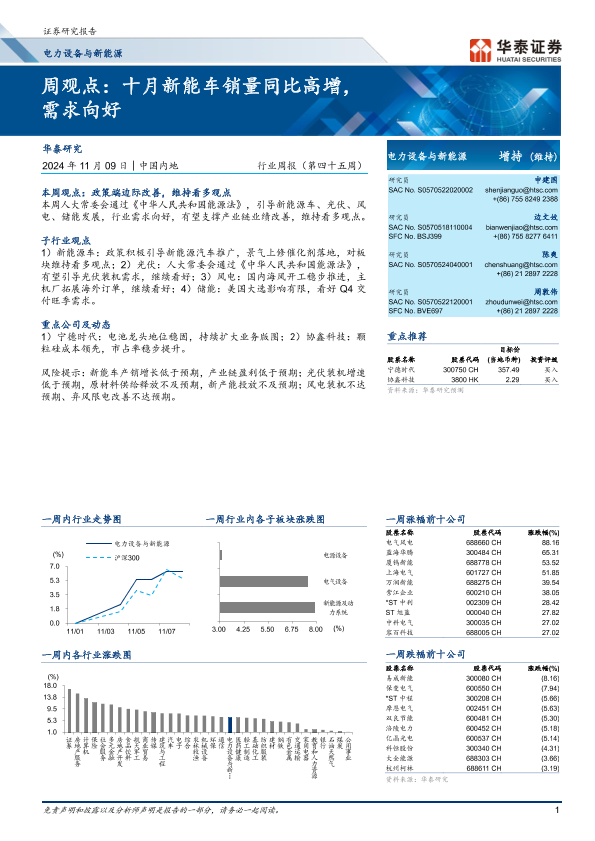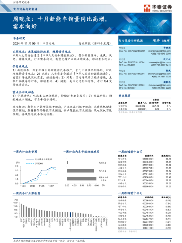 【华泰证券】【20241109】电力设备与新能源行业周报(第四十五周):周观点,十月新能车销量同比高增,需求向好-17页