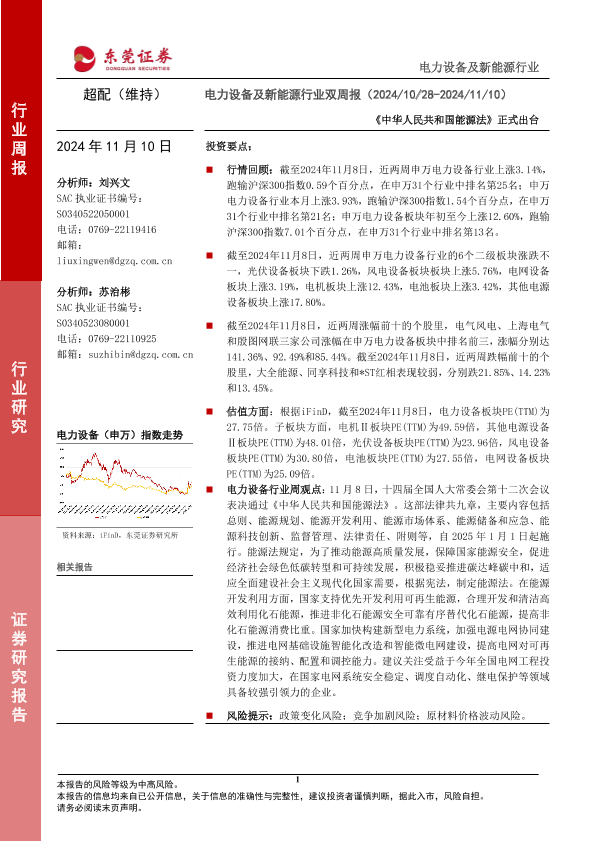 【东莞证券】【20241110】电力设备及新能源行业双周报:《中华人民共和国能源法》正式出台-13页