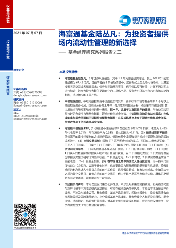 【申万宏源】【20210707】海富通基金陆丛凡,为投资者提供场内流动性管理的新选择-16页