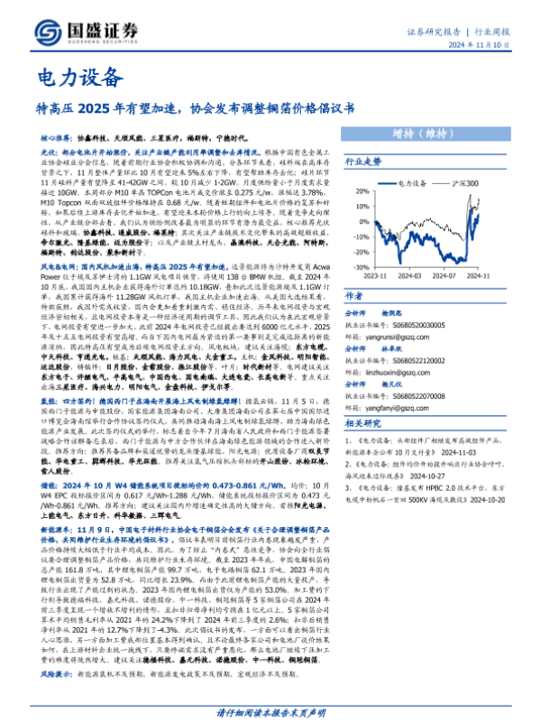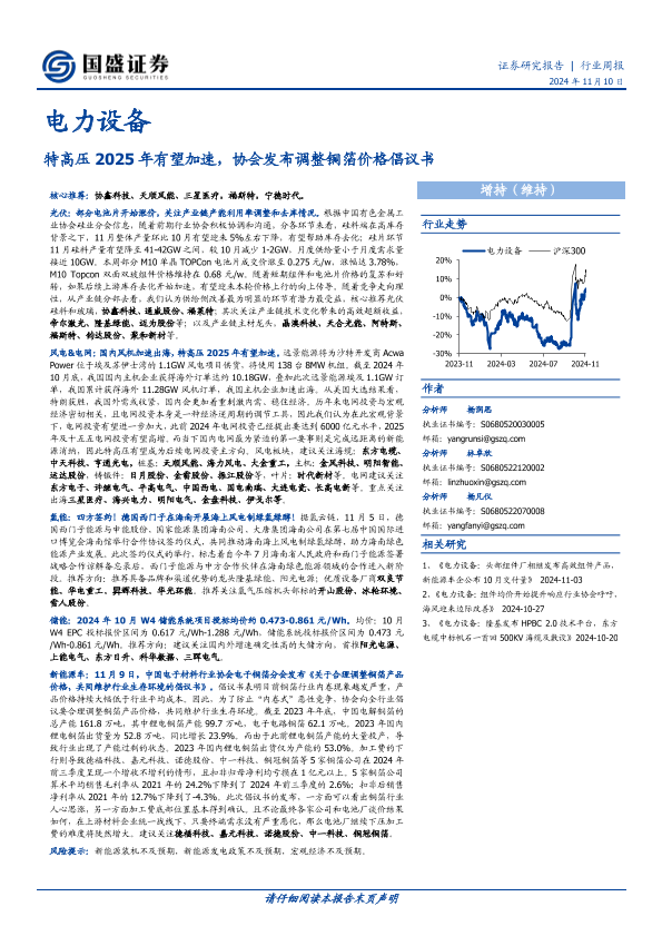 【国盛证券】【20241110】电力设备行业周报:特高压2025年有望加速,协会发布调整铜箔价格倡议书-16页