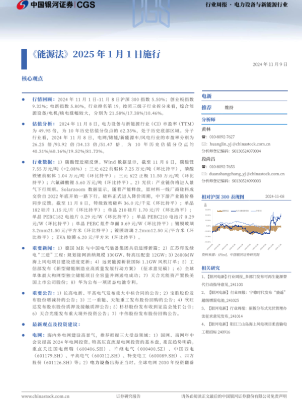 【银河证券】【20241109】电力设备与新能源行业行业周报:《能源法》2025年1月1日施行-21页