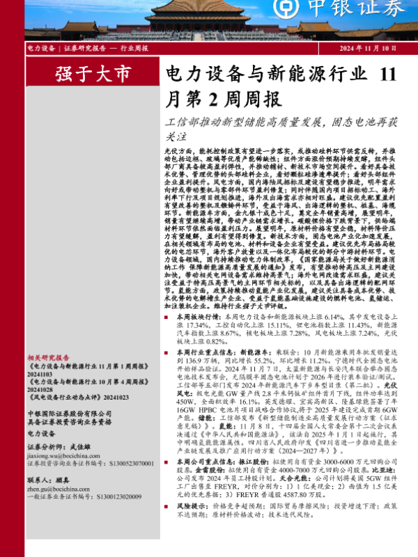 【中银证券】【20241110】电力设备与新能源行业11月第2周周报:工信部推动新型储能高质量发展,固态电池再获关注-13页