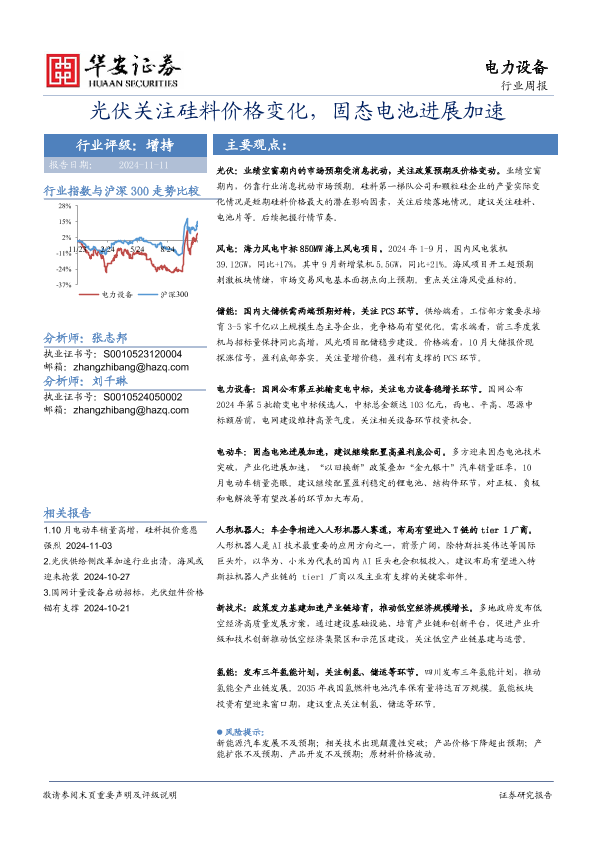 【华安证券】【20241111】20241111-华安证券-电力设备行业周报:光伏关注硅料价格变化,固态电池进展加速-19页