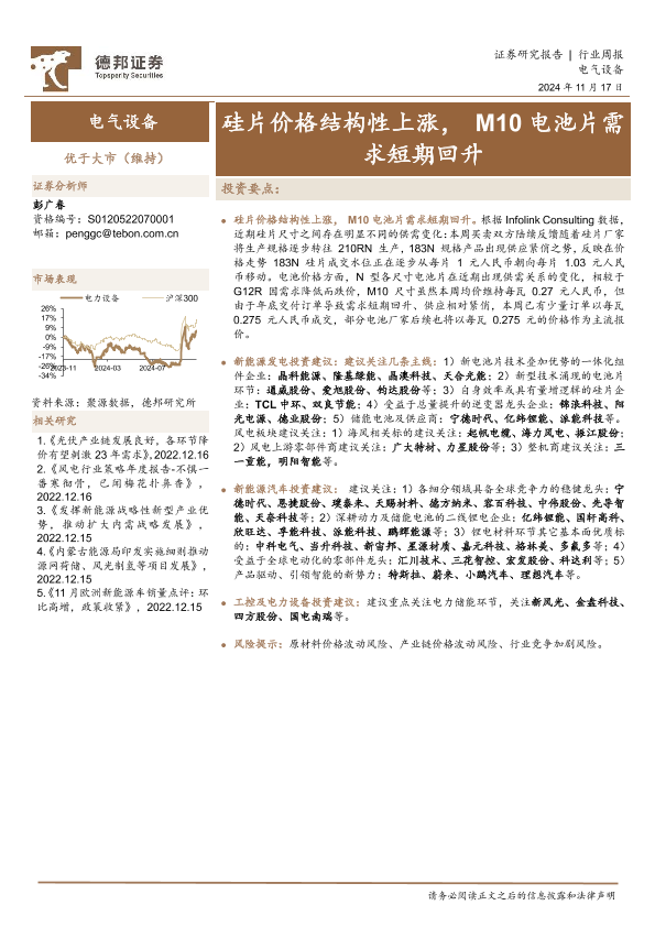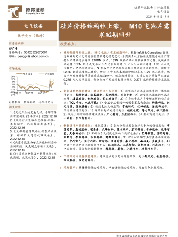 【德邦证券】【20241117】电气设备行业周报:硅片价格结构性上涨,M10电池片需求短期回升-11页