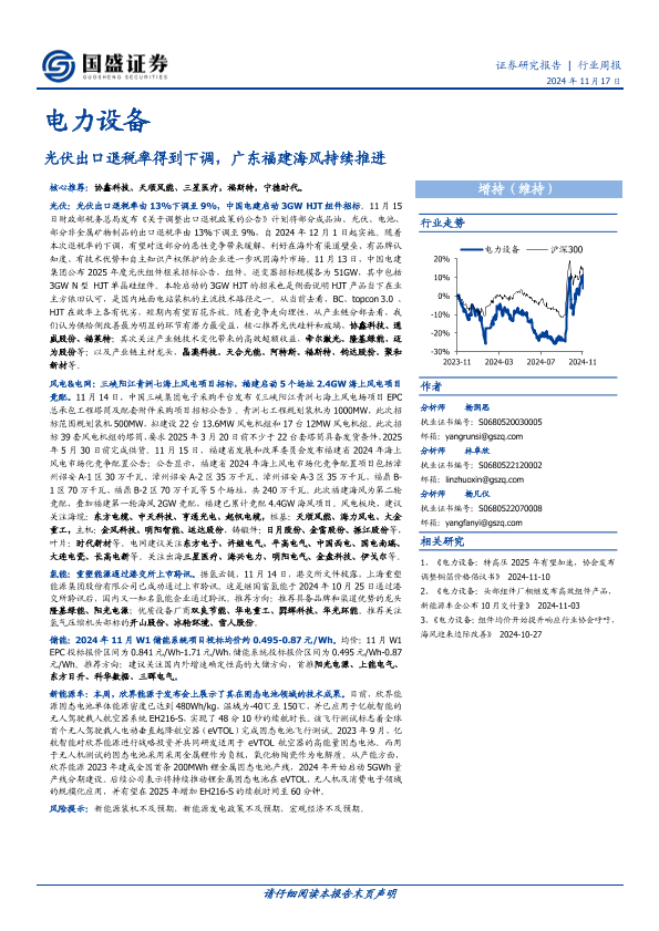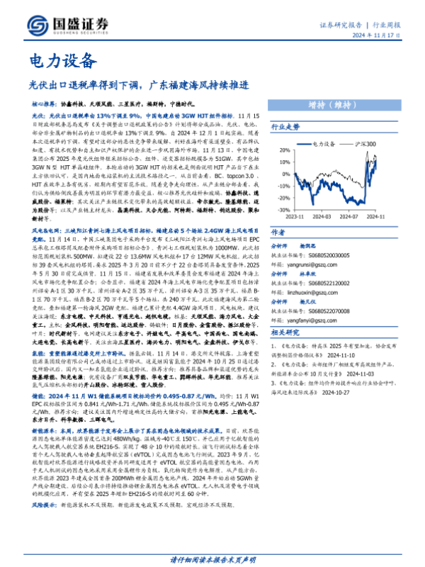 【国盛证券】【20241117】电力设备行业周报:光伏出口退税率得到下调,广东福建海风持续推进-15页