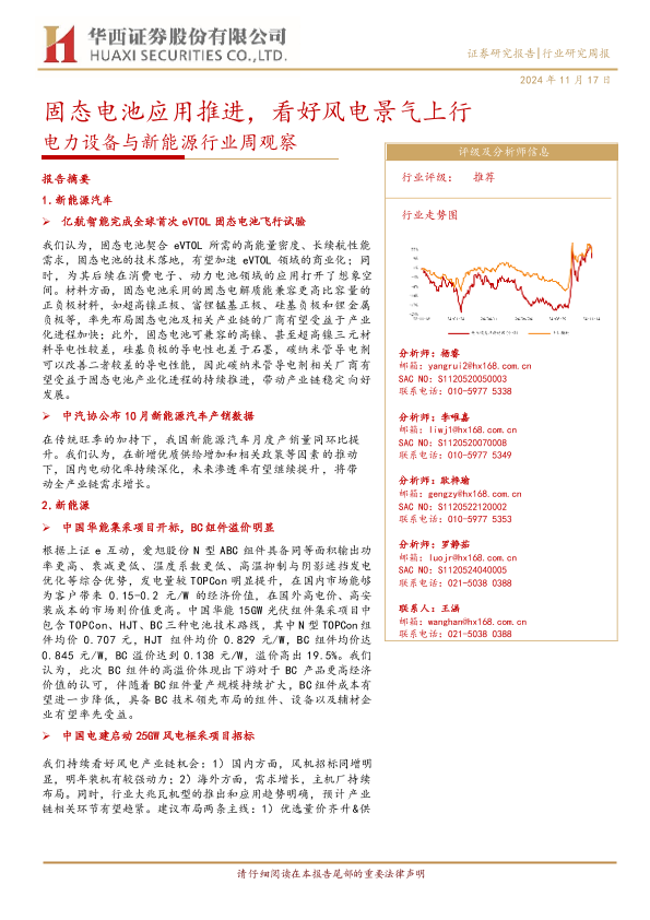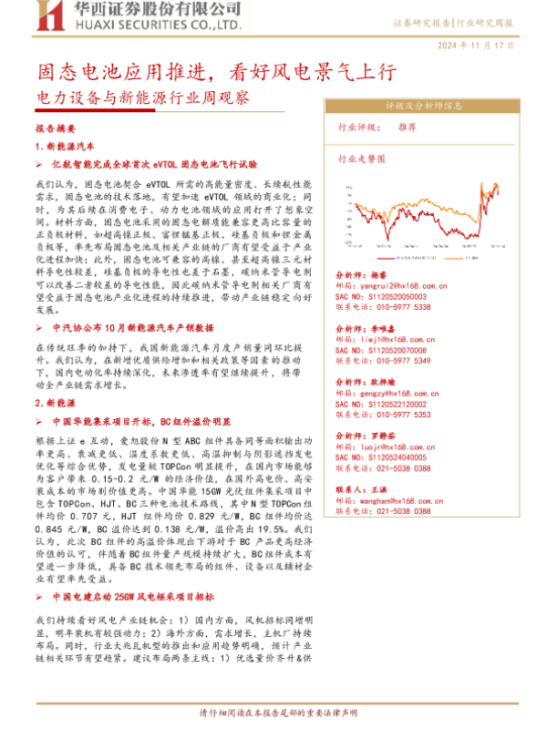 【华西证券】【20241117】电力设备与新能源行业周观察:固态电池应用推进,看好风电景气上行-25页