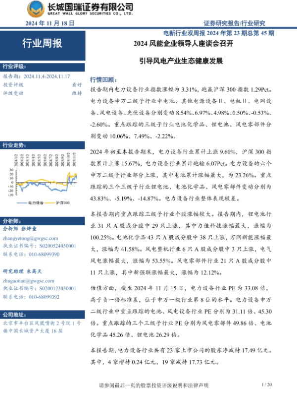 【长城国瑞证券】【20241118】2024风能企业领导人座谈会召开 引导风电产业生态健康发展-20页