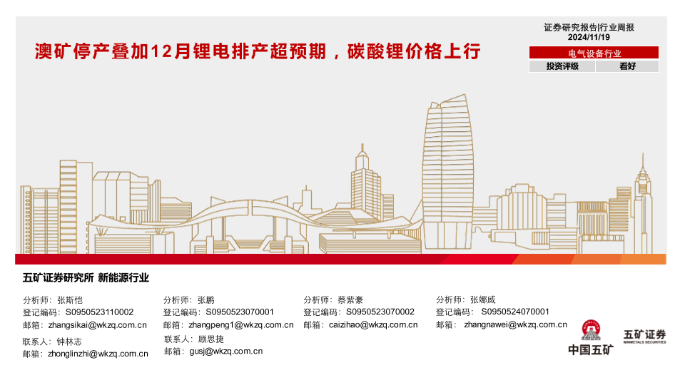 【五矿证券】【20241119】澳矿停产叠加12月锂电排产超预期,碳酸锂价格上行-44页