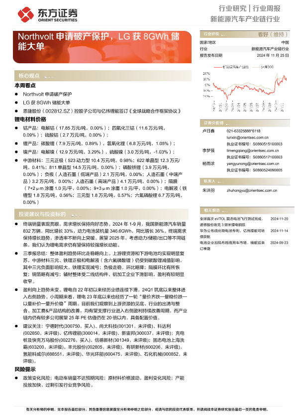 【东方证券】【20241125】20241125-东方证券-新能源汽车产业链行业周报:Northvolt申请破产保护,LG获8GWh储能大单-14页