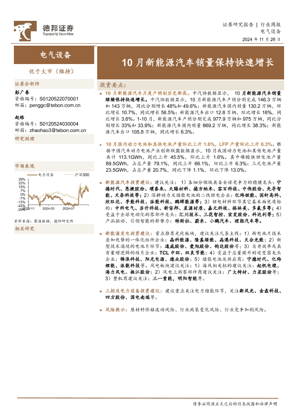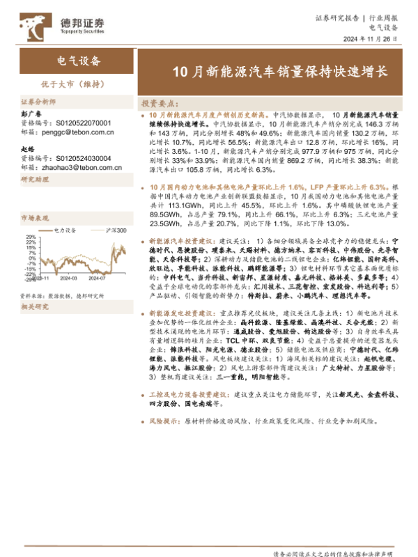 【德邦证券】【20241126】20241126-德邦证券-电气设备行业周报:10月新能源汽车销量保持快速增长-11页