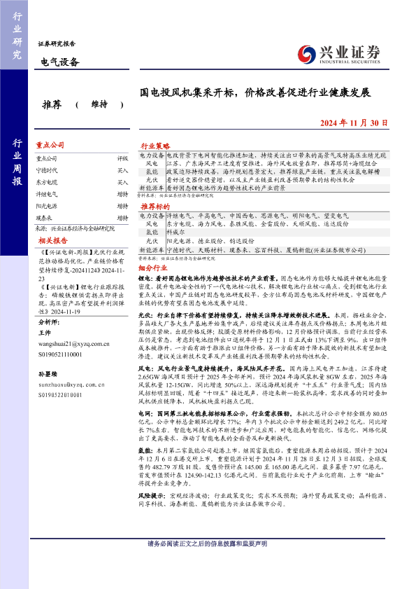 【兴业证券】【20241130】国电投风机集采开标,价格改善促进行业健康发展-19页
