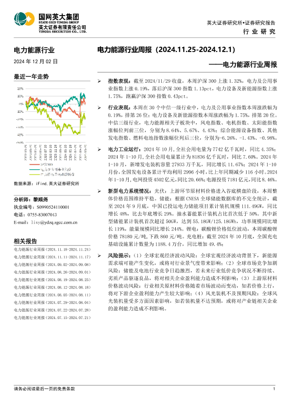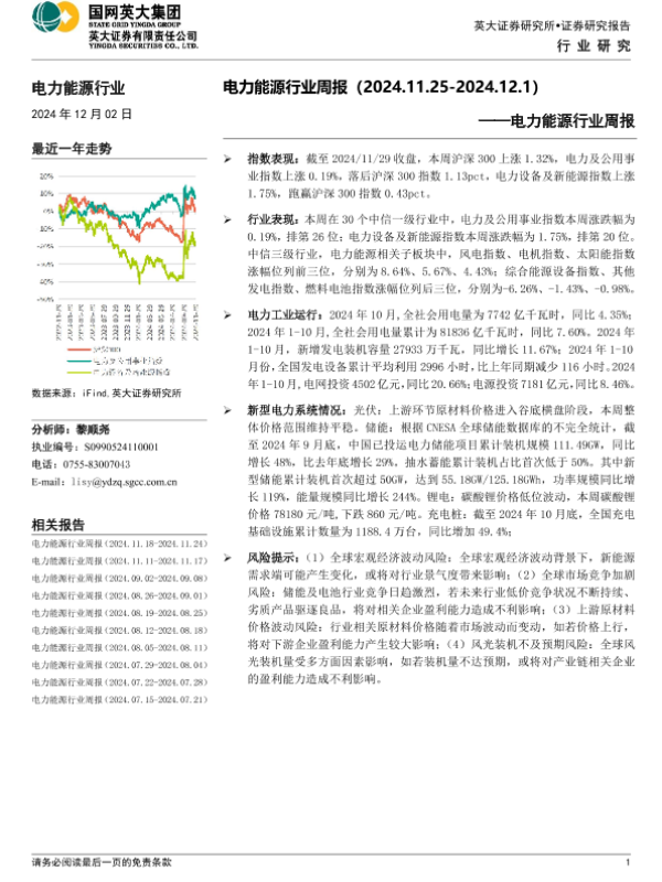 市场分析 投资建议 新型电力系统 行业周报 电力能源