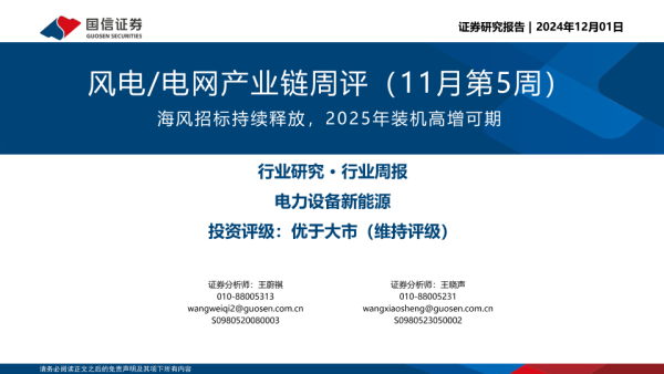【国信证券】【20241201】风电/电网产业链周评(11月第5周):海风招标持续释放,2025年装机高增可期-28页