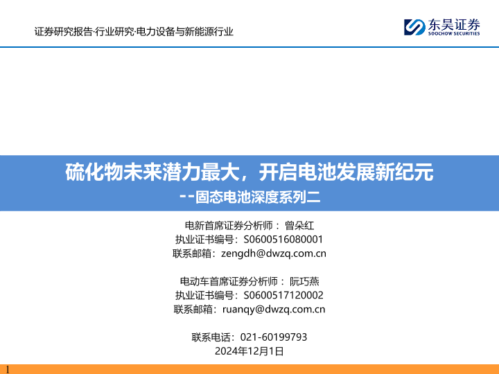 【东吴证券】【20241201】固态电池深度系列二:硫化物未来潜力最大,开启电池发展新纪元-57页