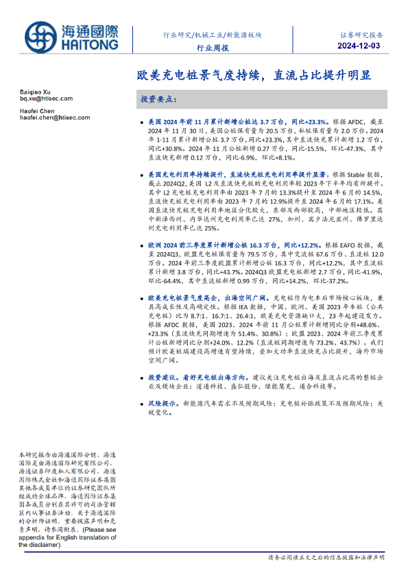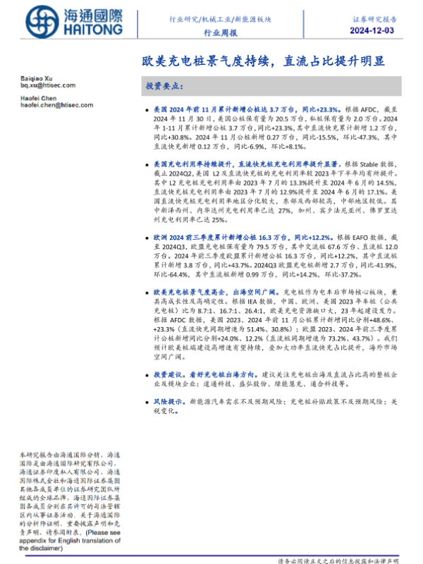 【海通国际】【20241203】20241203-海通国际-新能源板块行业周报:欧美充电桩景气度持续,直流占比提升明显-10页
