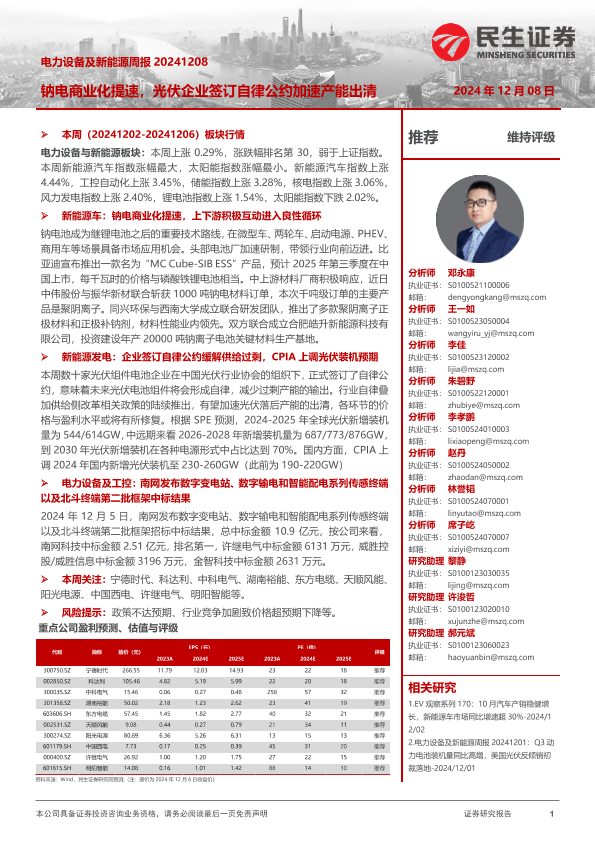 【民生证券】【20241208】电力设备及新能源周报:钠电商业化提速,光伏企业签订自律公约加速产能出清-23页