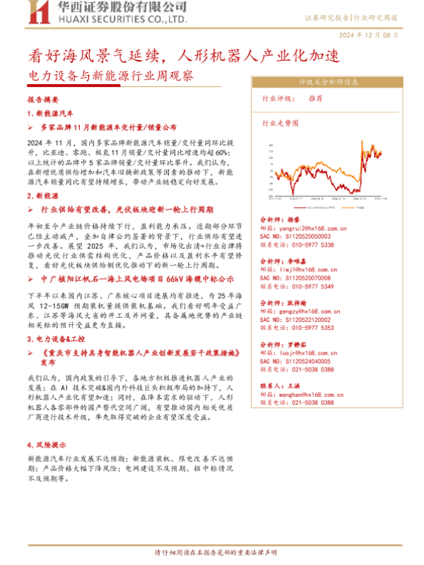 【华西证券】【20241208】电力设备与新能源行业周观察:看好海风景气延续,人形机器人产业化加速-23页