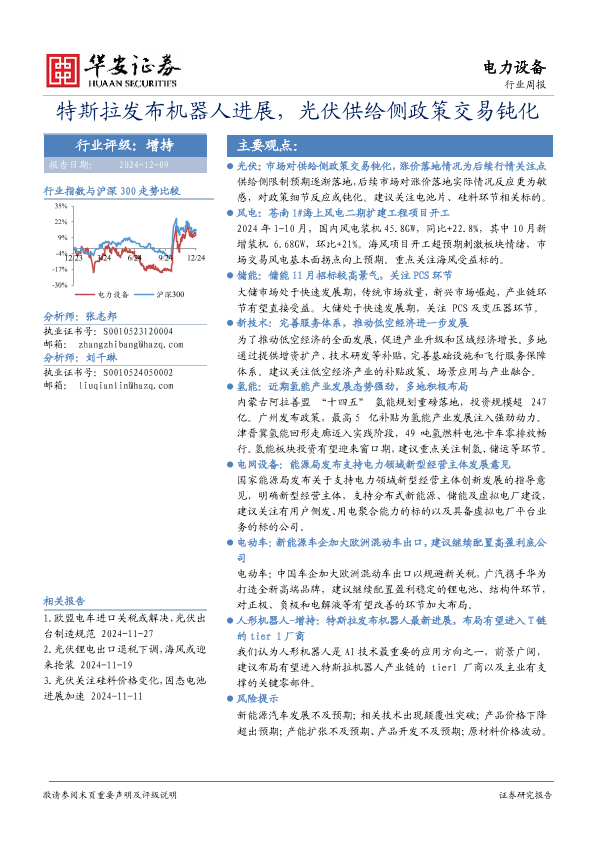 【华安证券】【20241209】20241209-华安证券-电力设备行业周报:特斯拉发布机器人进展,光伏供给侧政策交易钝化-16页