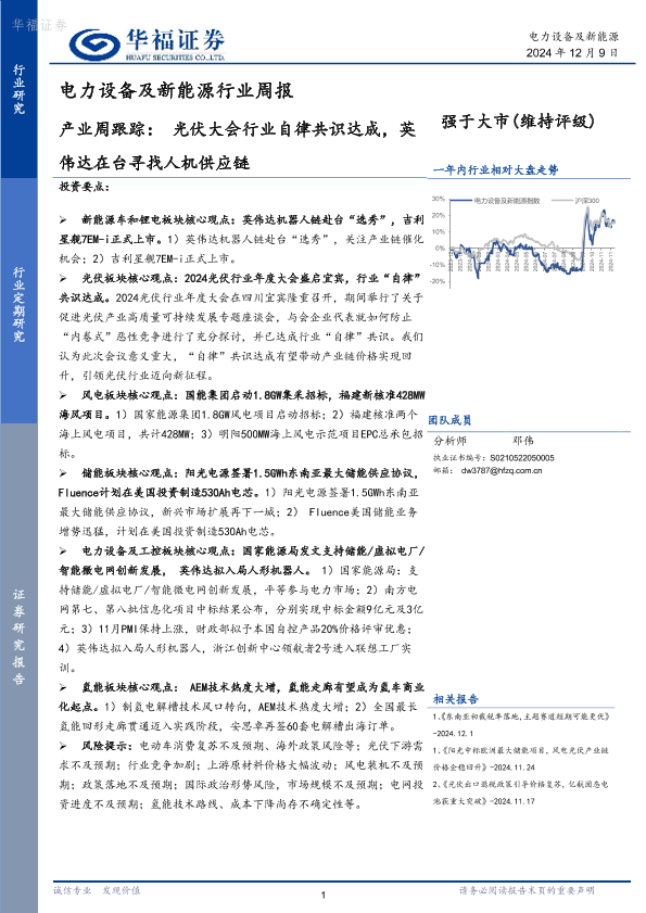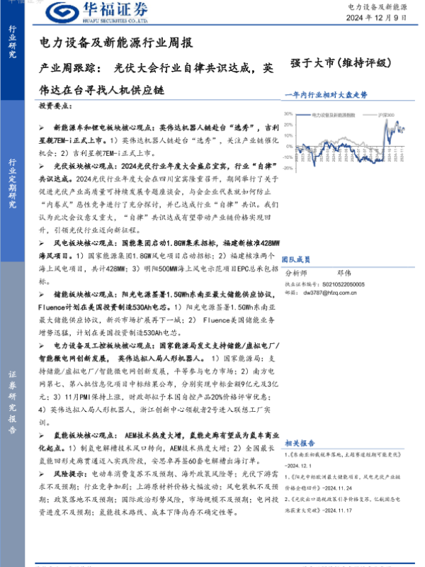 【华福证券】【20241209】电力设备及新能源行业周报:产业周跟踪:光伏大会行业自律共识达成,英伟达在台寻找人机供应链-16页
