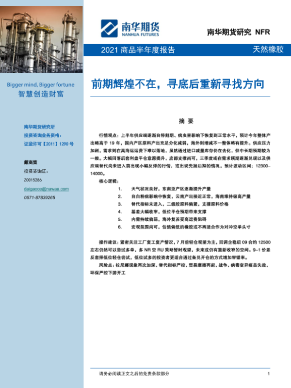 【南华期货】【20210706】天然橡胶2021商品半年度报告:前期辉煌不在,寻底后重新寻找方向-39页
