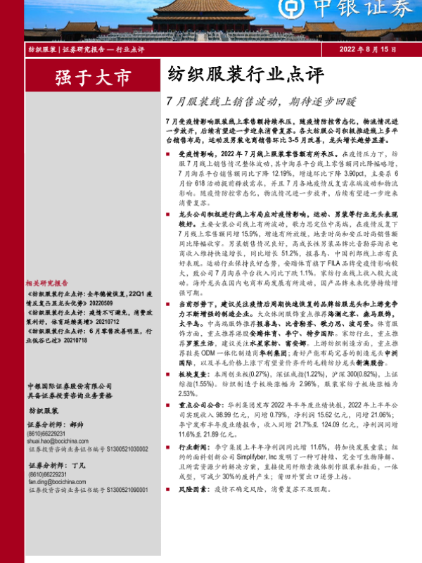 【中银证券】【20220815】纺织服装行业点评:7月服装线上销售波动,期待逐步回暖-21页