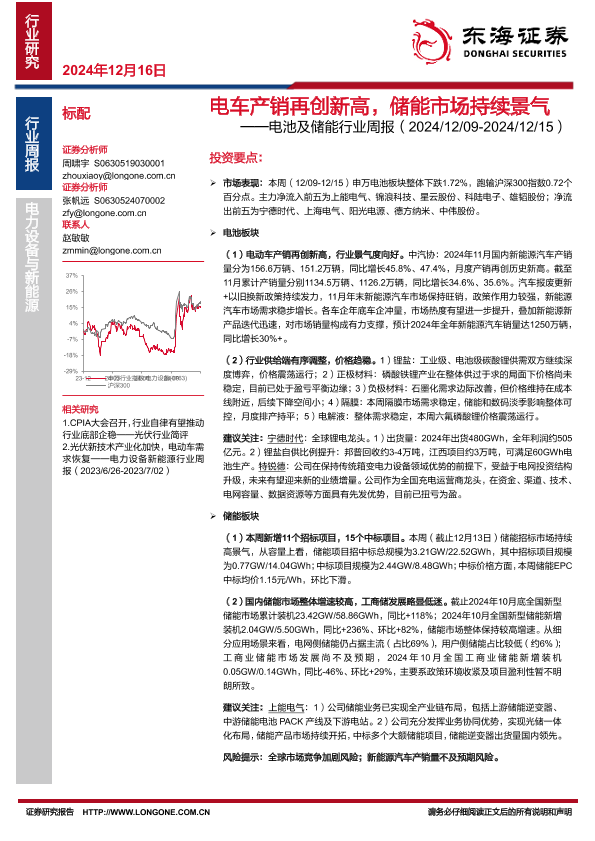 【东海证券】【20241216】电车产销再创新高,储能市场持续景气-14页