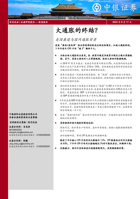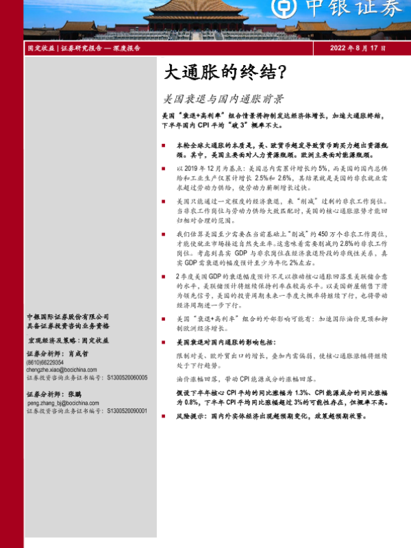 【中银证券】【20220817】美国衰退与国内通胀前景:大通胀的终结?-21页