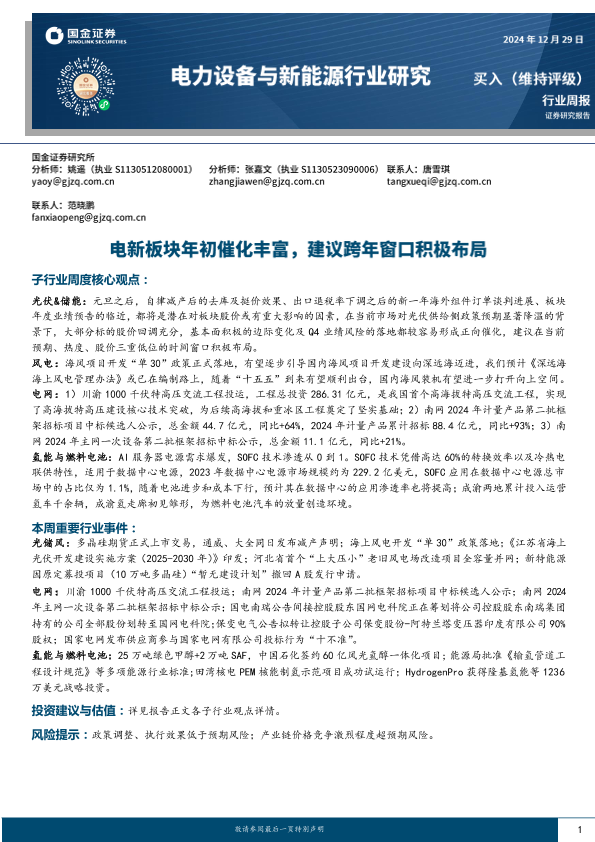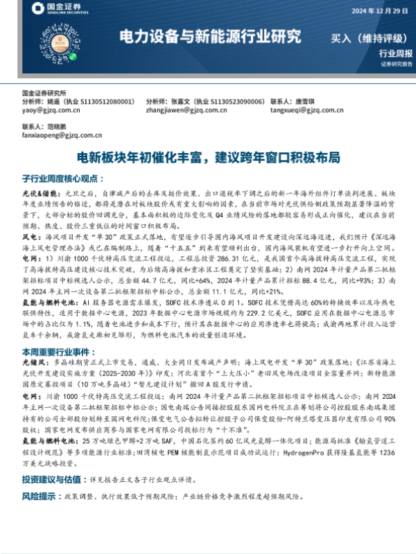 【国金证券】【20241229】电力设备与新能源行业研究:电新板块年初催化丰富,建议跨年窗口积极布局-10页
