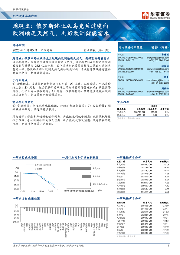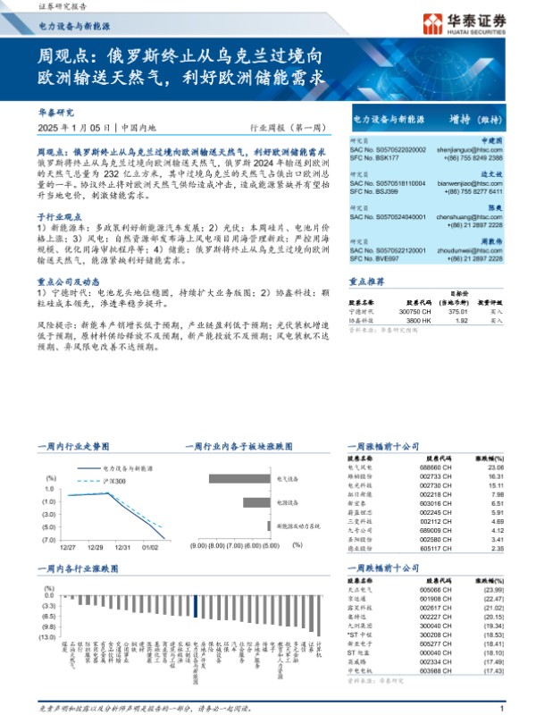 【华泰证券】【20250105】电力设备与新能源行业周观点:俄罗斯终止从乌克兰过境向欧洲输送天然气,利好欧洲储能需求-16页