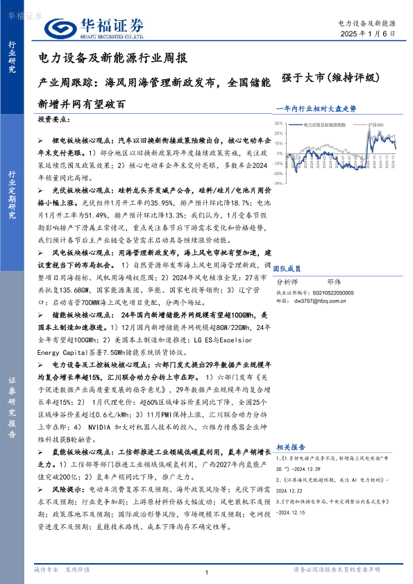 【华福证券】【20250106】电力设备及新能源行业周报:产业周跟踪:海风用海管理新政发布,全国储能新增并网有望破百-16页