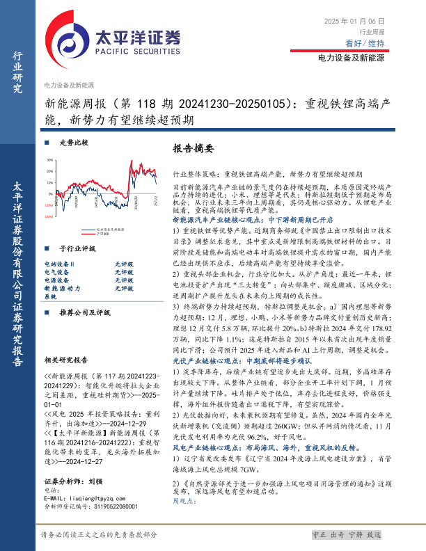 【太平洋证券】【20250106】20250106-太平洋-新能源周报(第118期):重视铁锂高端产能,新势力有望继续超预期-25页