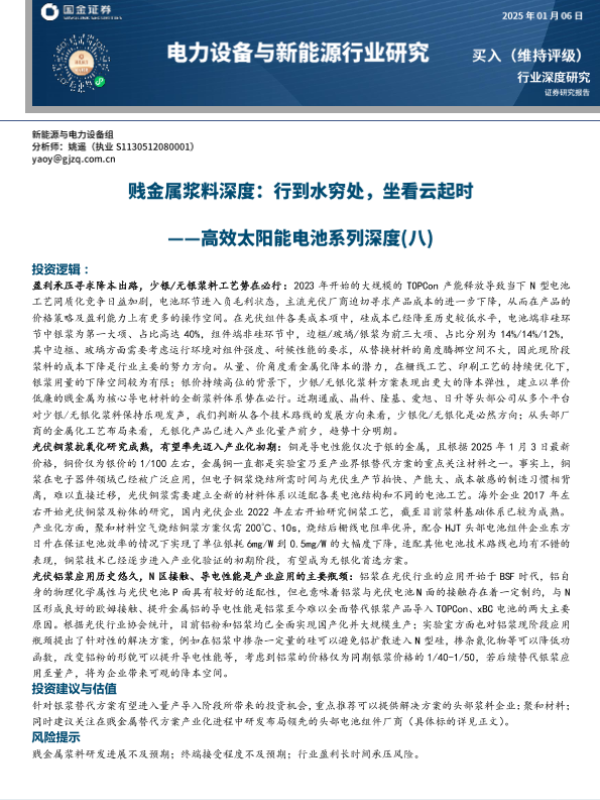 【国金证券】【20250106】高效太阳能电池系列深度(八):贱金属浆料深度:行到水穷处,坐看云起时-22页