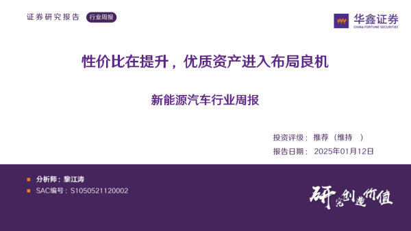 【华鑫证券】【20250112】新能源汽车行业周报:性价比在提升,优质资产进入布局良机-33页