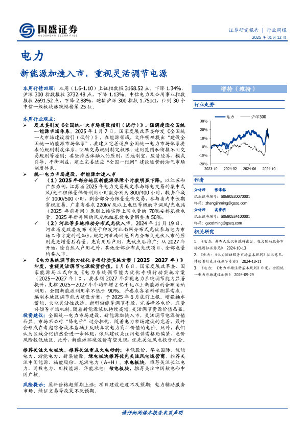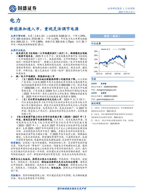 【国盛证券】【20250112】电力行业周报:新能源加速入市,重视灵活调节电源-17页