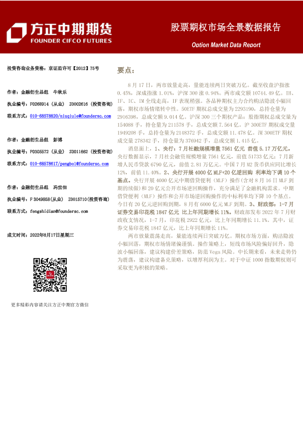 【方正中期期货】【20220817】股票期权市场全景数据报告-22页