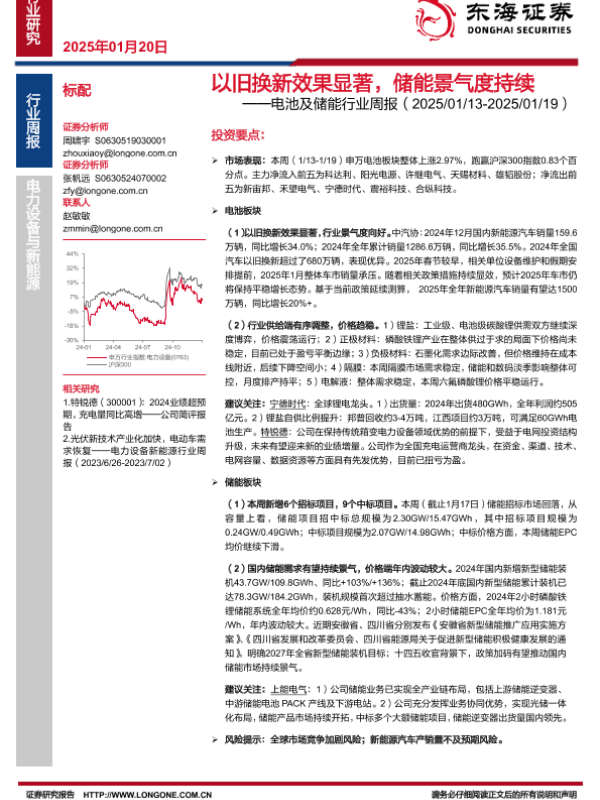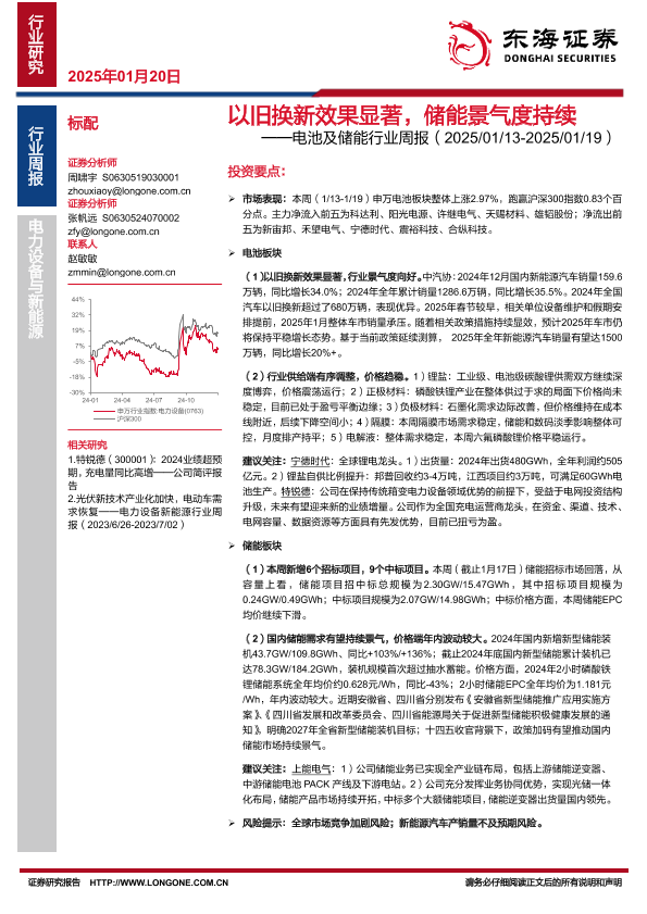 【东海证券】【20250120】20250120-东海证券-电池及储能行业周报:以旧换新效果显著,储能景气度持续-12页
