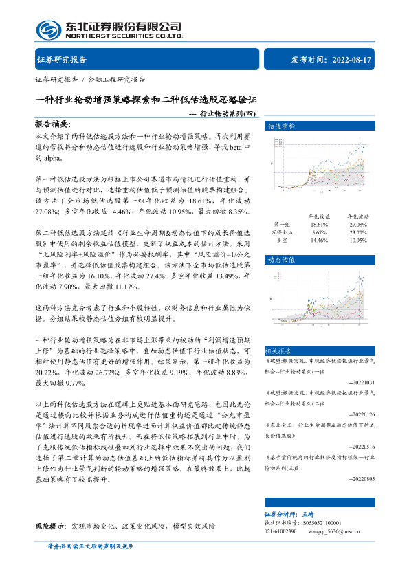 【东北证券】【20220817】行业轮动系列(四):一种行业轮动增强策略探索和二种低估选股思路验证-21页