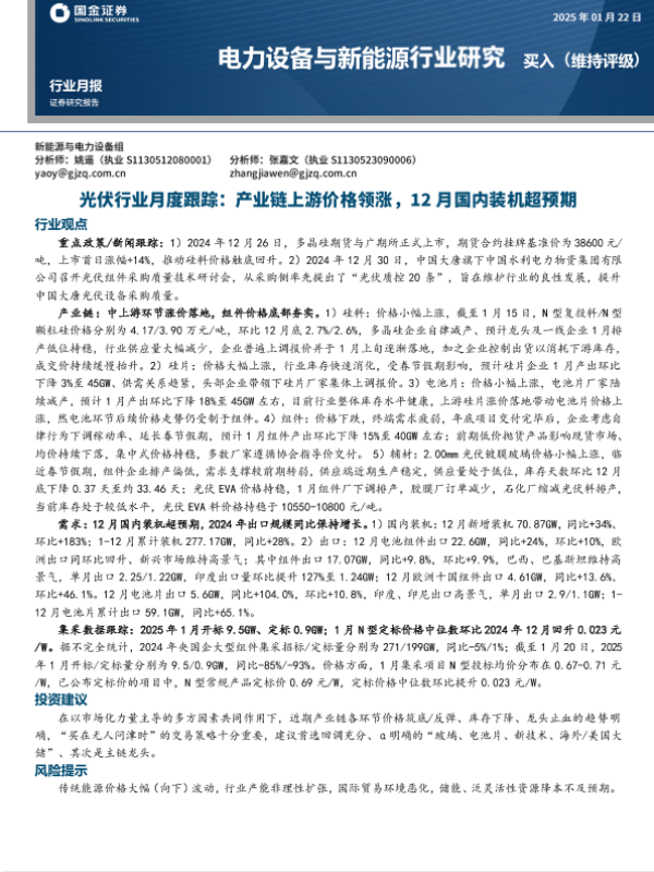 【国金证券】【20250122】光伏行业月度跟踪:产业链上游价格领涨,12月国内装机超预期-20页