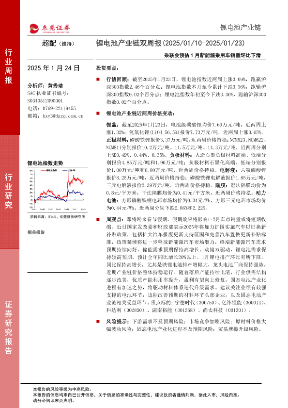 【东莞证券】【20250124】锂电池产业链双周报:乘联会预估1月新能源乘用车销量环比下滑-13页