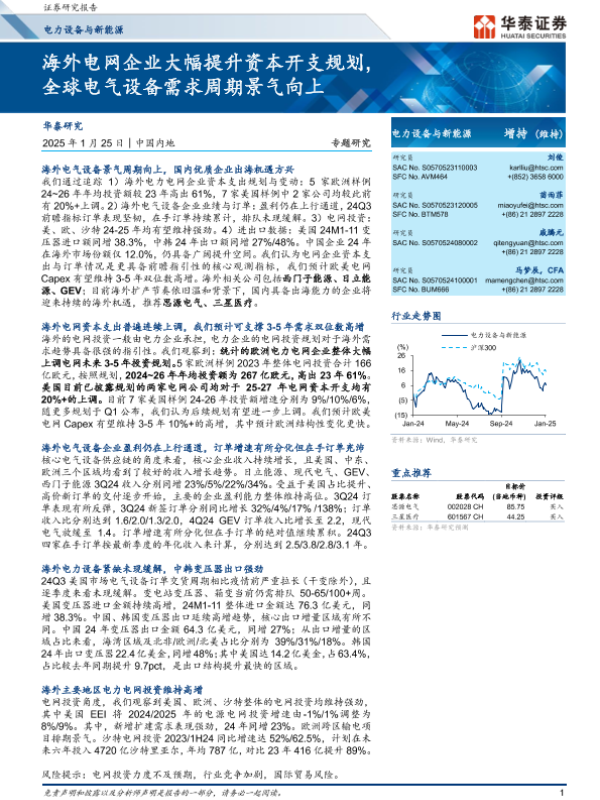 【华泰证券】【20250125】海外电网企业大幅提升资本开支规划,全球电气设备需求周期景气向上-20页