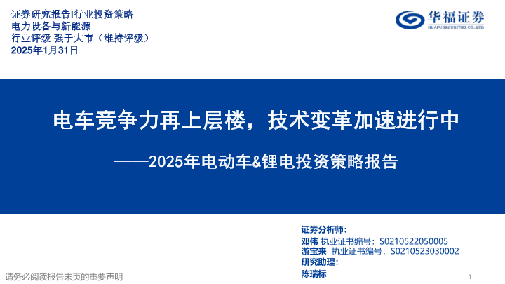 【华福证券】【20250131】2025年电动车&锂电投资策略报告:电车竞争力再上层楼,技术变革加速进行中-38页