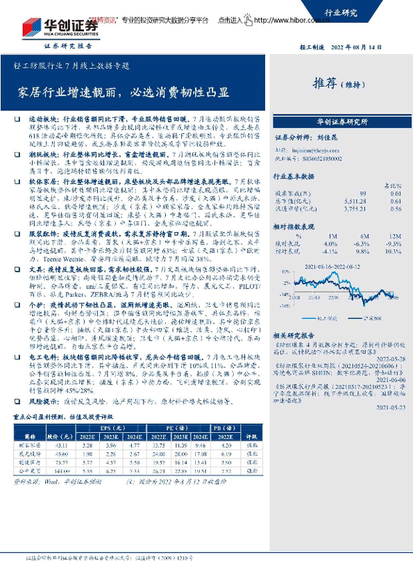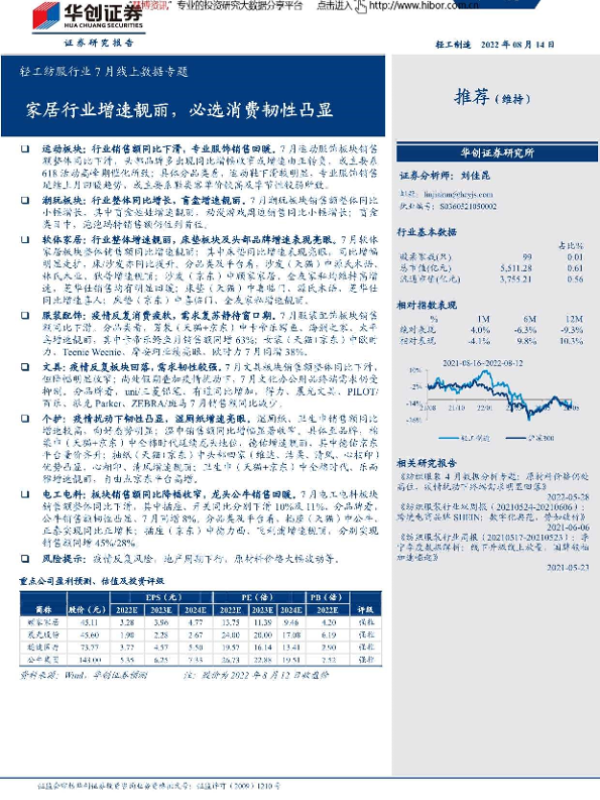 【华创证券】【20220814】轻工纺服行业7月线上数据专题:家居行业增速靓丽,必选消费韧性凸显-32页